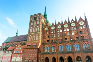 Zu den echten Hightlights zählen wir die Besuche in Wismar und Stralsund. Ihre Altstädte machen der Auszeichnung als UNESCO Welterbe alle Ehre. Bei strahlendem Sonnenschein präsentieren sie, dass sie zu den besten Zeiten der Hanse im wahrsten Sinne des Wortes „steinreich“ waren.