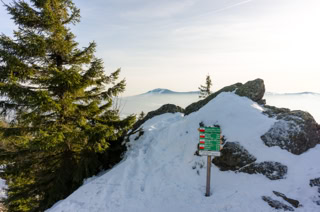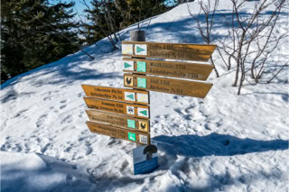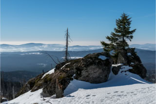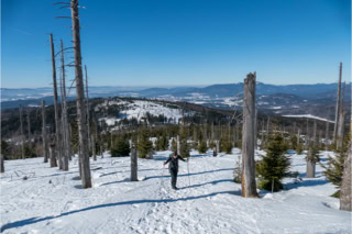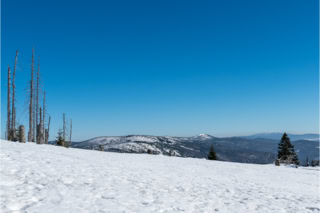 All unsere Wanderungen, Langlauftouren und Schneeschuhwanderungen haben wir diesmal dem Wander-Portal Outdoor Active entnommen und waren jeden Tag aufs Neue überrascht, denn wir dachten, man könne den Vortag nicht toppen. Absolut faszinierend war jedoch die Wanderung auf den Rachel. Ziemlich anstrengend, denn es wird ziemlich warm und der Schnee ziemlich sulzig, aber uns erwartet eine einmalige Landschaft und eine sagenhafte Aussicht. Vom Gipfel aus erkennen wir in 180 km Entfernung den Watzmann!