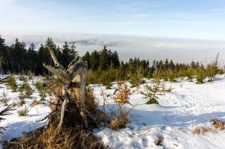 Eine taufrische Luchsspur hält uns auf unserer Schneeschuhwanderung um den Kleinen Arber in Atem. Den Schneekrümeln in der Spur nach zu urteilen - jeder Trapper würde uns recht geben - beobachtet der Luchs uns vom nächsten Busch aus. Abends berichtet uns ein Wanderer „Der Wolf ist zurück“. Er hat im Schachten-Gebiet sogar Wolfspuren gesehen.