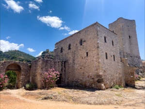 Da wirkt Areopoli, Hauptort der Mani, viel natürlicher und lebendiger. Hier sind die denkmalgeschützten Wohntürme renoviert, aber nicht nur für Touristen reserviert. Da ist auch eine Bäckerei oder ein Gemüseladen im Erdgeschoss untergebracht. Und neben den aufgehübschten Cafés gibt es auch die Bar, in der die Griechen ihren 12-Uhr-Ouzo trinken und ein bisschen schwatzen. Ein fliegender Händler fährt durch die engen Gassen und preist seine Ware durchs Megaphon an. Wir verstehen natürlich nichts, aber es riecht nach Fisch! Wir rennen dem Auto in die nächste Gasse hinterher. Im Kofferraum stehen zwei eisgefüllte Styroporschachteln mit Sardinen und Babycalamari. 530 Gramm Babycalamari für fünf Euro wechseln den Besitzer. Bloß, wie präpariert man die für die Pfanne? Google weiß alles!