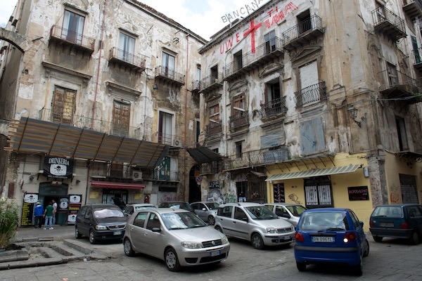 Eigentlich wird dringend davon abgeraten mit einem großen Auto in die Stadt zu fahren und sich damit dem Chaos sowie den ungeschriebenen Gesetzen des italienischen Straßenverkehrs auszusetzen. Da wir aber nach der Ankunft im Hafen ohnehin mitten in der Stadt waren, haben wir gleich auf einem bewachten Parkplatz mitten in der Stadt übernachtet. Das war nicht gerade idyllisch, aber wirklich sehr ruhig (fast schon enttäuschend; die Italiener sind auch nicht mehr das, was sie mal waren …) und es hatte den ungemein praktischen Vorteil, dass wir am kommenden Tag die Stadt zu Fuß erkunden konnten ohne große Anfahrt mit Bus oder Bahn.