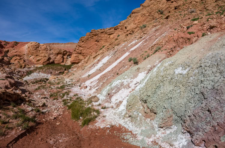 Noch ein bisschen weiter erreichen wir die „Roten Berge“ - ein sehr markantes Landschaftsbild, das in der Wegbeschreibung mit keiner Silbe erwähnt ist.