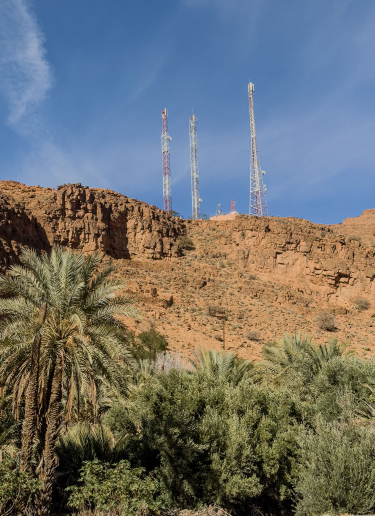 An oder in die Wand geklebt: eine alte Berbersiedlung. Funkantennen leuchten auch das letzte Seitental aus, diesmal reicht der Empfang bis 100 m an unseren Übernachtungsplatz. Absolute Ruhe an Silvester :-)