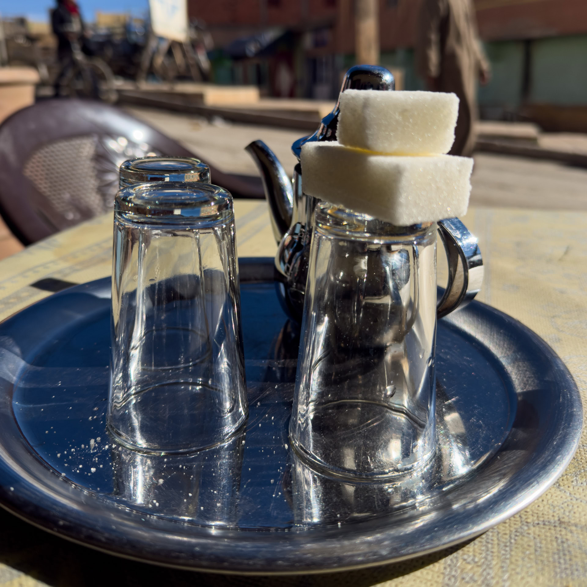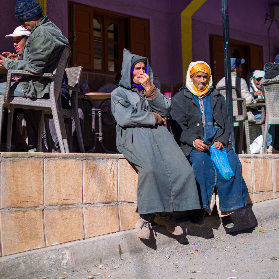 Man(n)n sitzt aber auch im oder am Café, was hier besser als Teehaus bezeichnet wird, quasselt und trinkt seinen Minztee.
