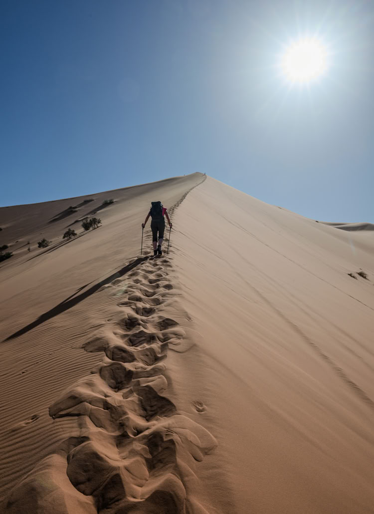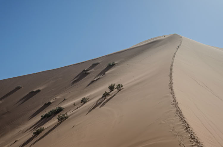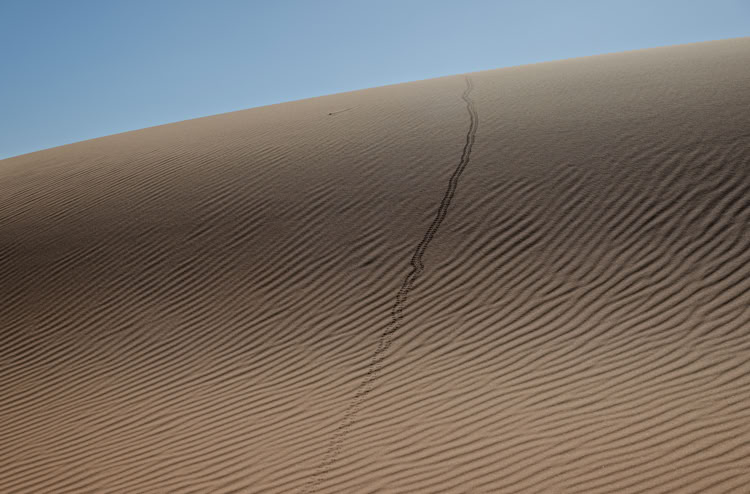 Weniger witzig ist, dass sich trotz grandioser Landschaft kein „erhabenes“ Gefühl einstellt. Es ist einfach zu laut. Quads und Allradfahrzeuge kurven unter ohrenbetäubendem Lärm die Dünenberge rauf und runter. Wie muss das erst zur Hochsaison sein?