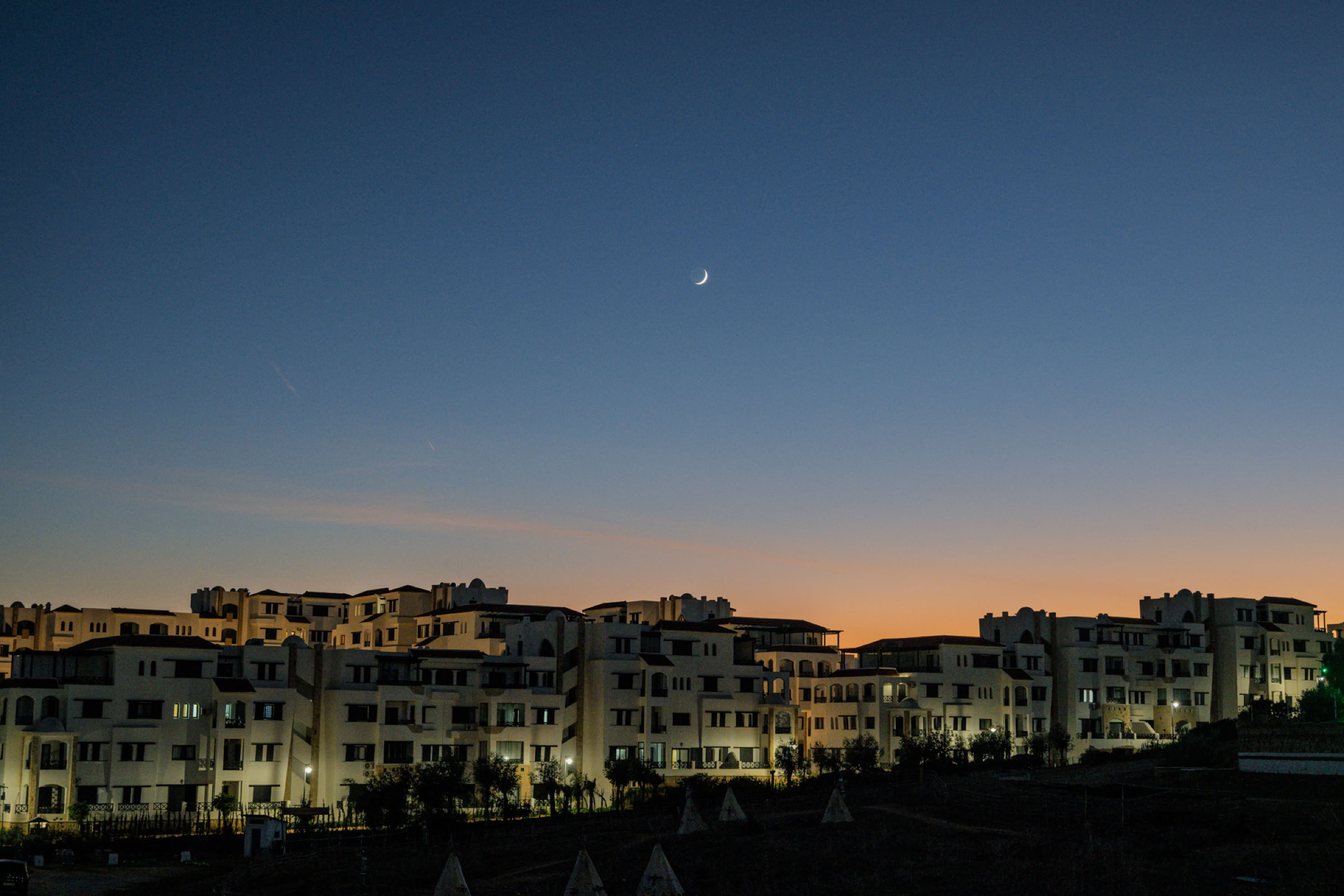 Toll, wie uns die Mondsichel in der ersten Nacht begrüßt. Der Fotograf wird nervös!