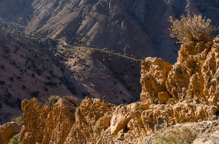 Die ersten Fotos sind „Straßenfotos“ von der Anfahrt an die zwei Seen. So langsam kommen wir in die kahlen, schroffen Berge des Hohen Atlas.