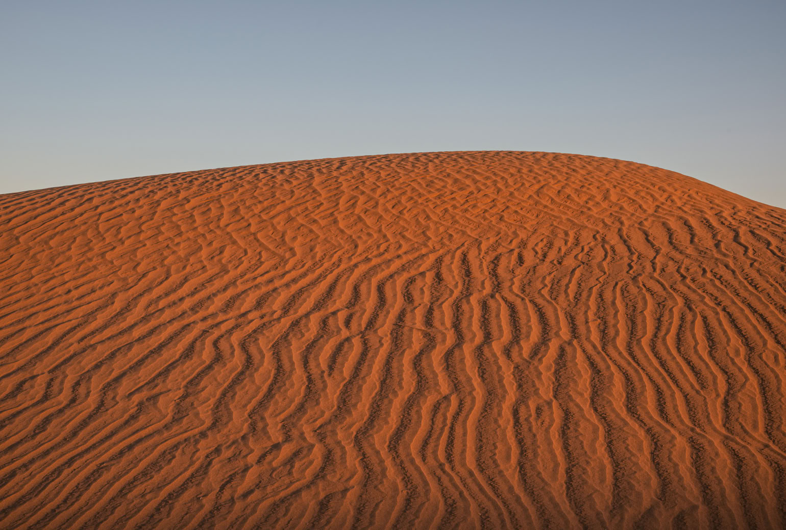 Trotz all dieser Widrigkeiten - die Wüste ist faszinierend! Wir machen jeden Tag einen Spaziergang in die Dünen zum Kaffeetrinken. Geraten in ein Sandstürmchen, das die Dünen in Kunstwerke verwandelt und unseren Cappuccino-Schaum wie mit Zimt pudert. Gott-sei-Dank ist der Sand auch so fein wie Zimt, so dass es nicht mal knirscht zwischen den Zähnen.