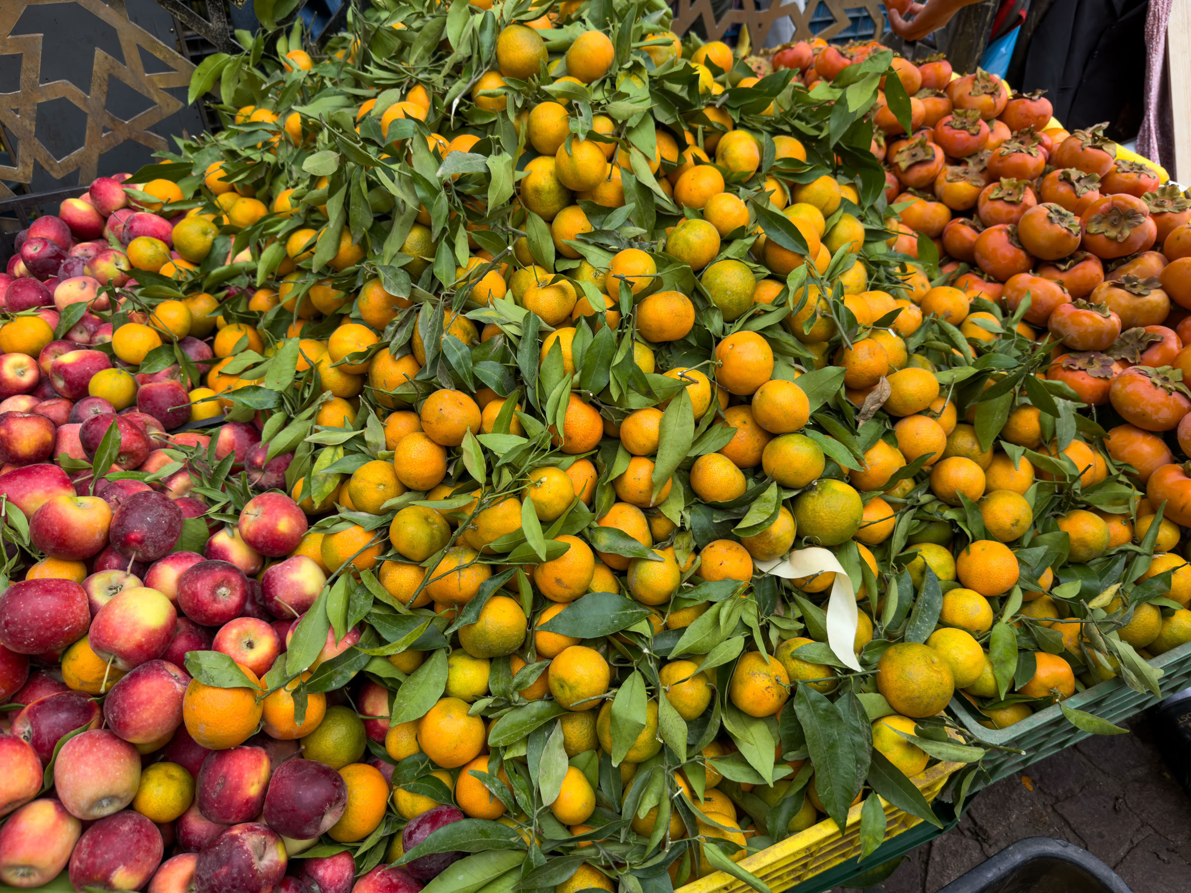 Zu guter Letzt genehmigen wir uns sozusagen als Belohnung für den anstrengenden Markttag einen arabischen Mokka und einen echten marokkanischen Pfefferminztee. Starker Grüntee mit viel, viel Minze und einem Streichholzkästchen-großen Stück Zucker! Schmeckt aber. Übrigens, Marokko importiert rund 40.000 Tonnen Grüntee pro Jahr.