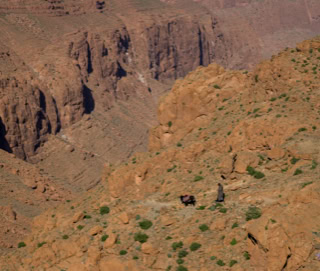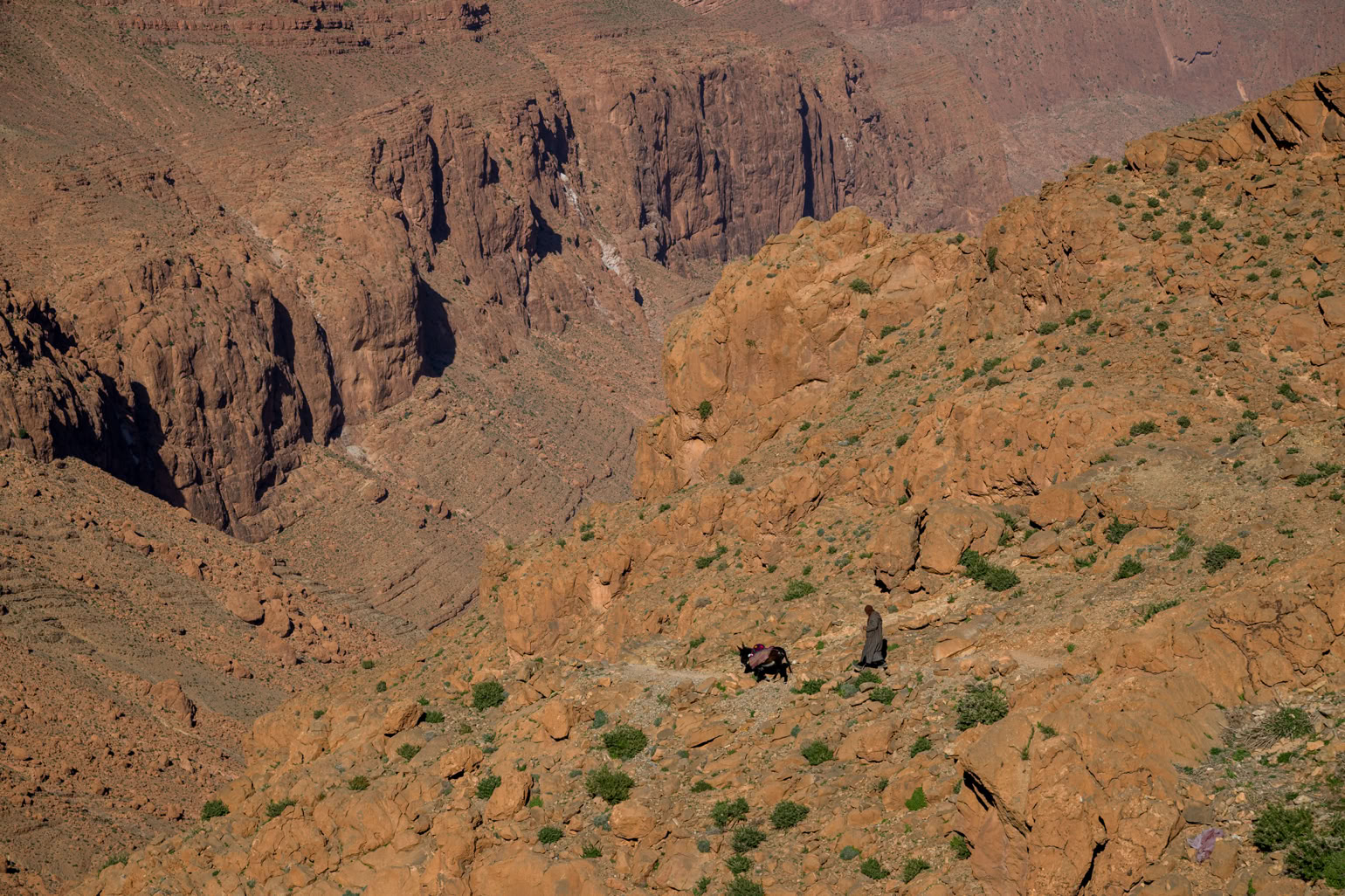 - Man liest ja immer vom störrischen Esel und manch Eselwanderer kann davon ein Lied singen. In Marokko wirken die Esel eher „programmiert“. Sie rennen ohne Last den Berg hinunter, bepackt gehen sie gemächlich den Berg hinauf. Immer ihrem Herrn oder ihrer Gebieterin voraus. Der hier abgebildete Esel ist mit seinem Herrn jedenfalls bergab viel schneller als wir beim Wandern.
