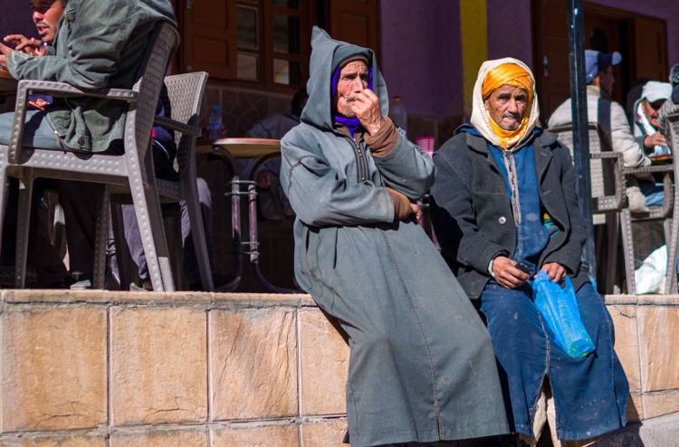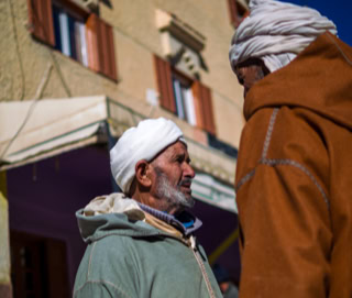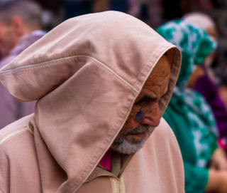 - Frauen in Marokko tragen meist ein Kopftuch, eine Ausnahme ist der Strohhut der Berberfrauen, allerdings meist auch mit Kopftuch darunter. Männer sind da erfinderischer, sind aber ebenso kaum ohne Kopfbedeckung unterwegs: Mal mit spitzer Kapuze der Djellaba (langer Kapuzenmantel), mal mit Tagelmust (langes Wickeltuch, das Turban mit Gesichtsschutz kombiniert), mal mit kleinem Gebetskäppchen. Man(n) geht behütet - es darf sogar auch mal eine Adidas-Kappe sein.