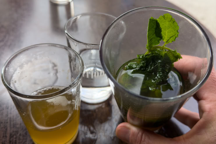 - Pfefferminztee, das Nationalgetränk der Marokkaner. Der Tee ist Symbol der Gastfreundschaft und wird eigentlich immer bei Ankunft auf einem Campingplatz, beim Teppich kaufen und sogar vom ärmsten Berber uns Vorbeiwandernden angeboten. Beschämende Gastfreundschaft nennen wir das.