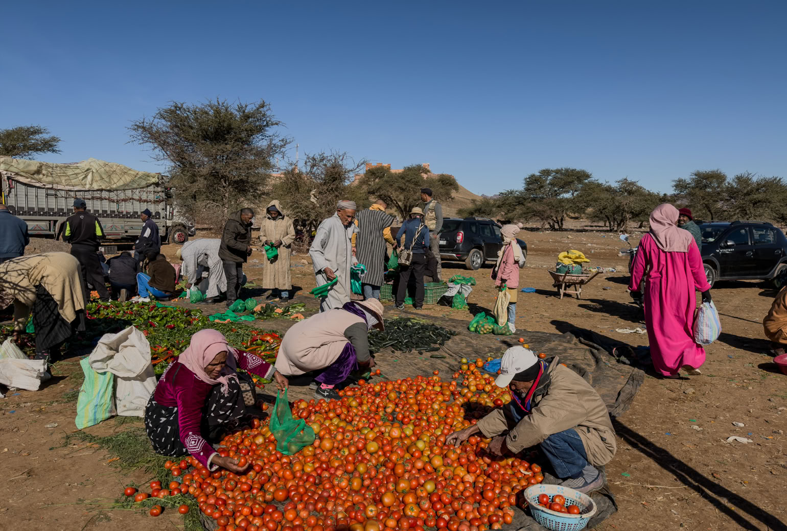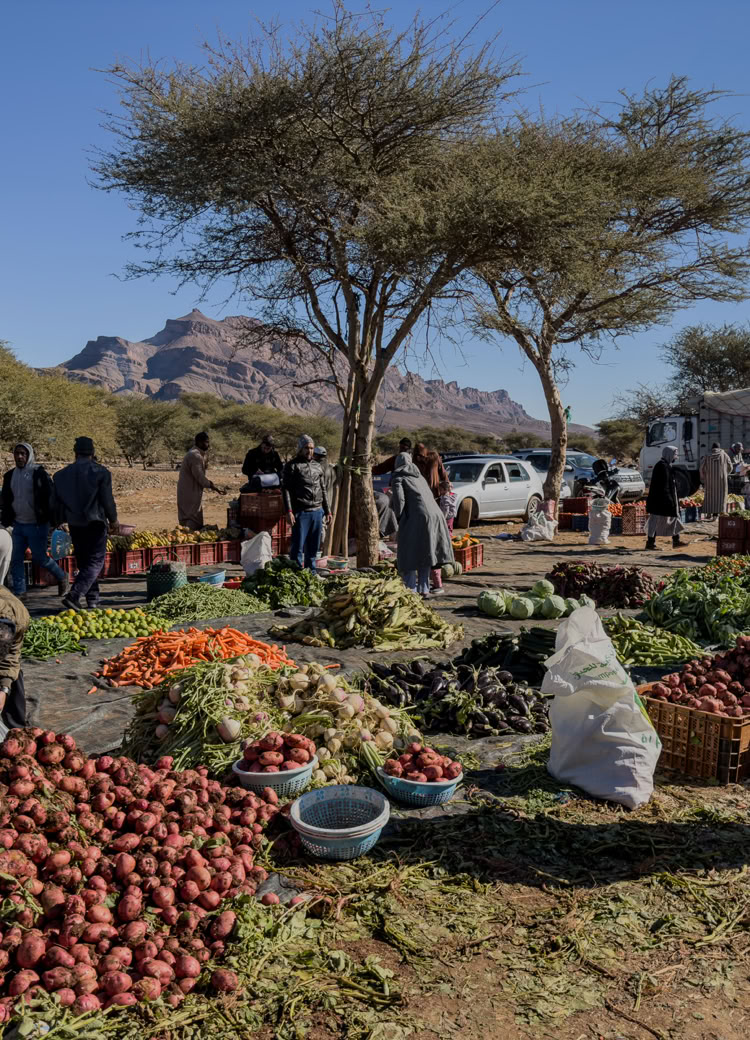 Meine Notizen zum Souk in Agdz lauten: Noch nie hat man sich weniger um uns gekümmert als heute auf dem Souk in Agdz. Keiner ist uns hinterhergerannt, keiner wollte uns was andrehen. Einen angenehmeren Einkauf haben wir in Marokko noch nicht erlebt. Aber eingekauft haben wir! Fünf Kilo Obst und Gemüse.