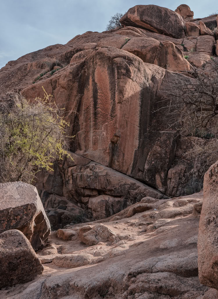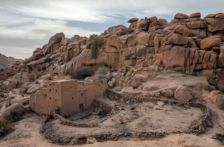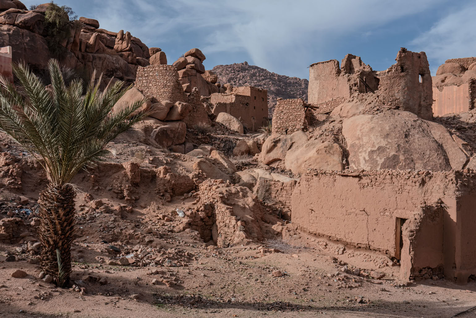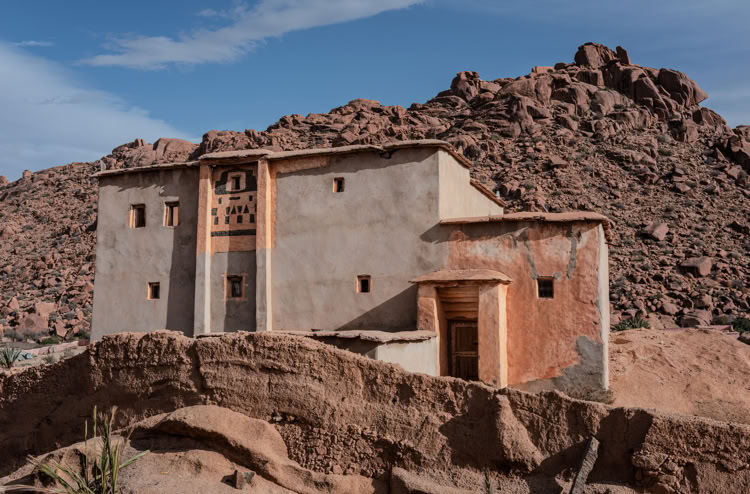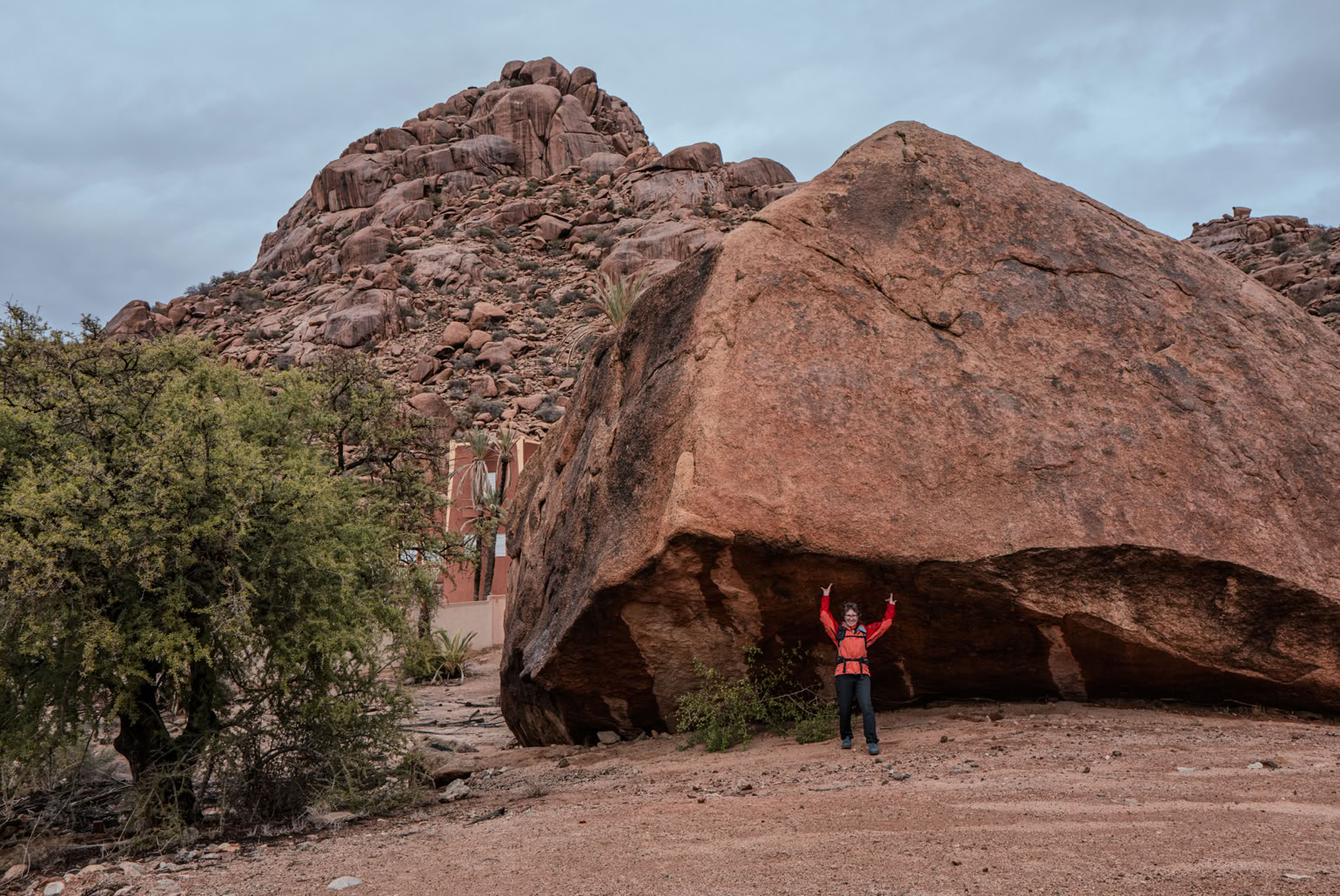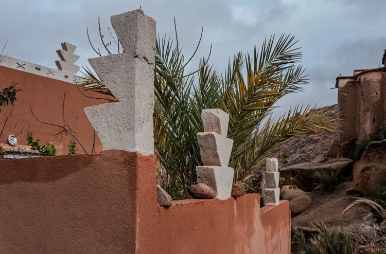 Tafrarout ist eingebettet in eine außergewöhnliche Landschaft. Das, was wir im vorhergehenden Beitrag als Giants’ Playground beschrieben haben, setzt sich rund um das Städtchen fort. Beim Wandern klettert man eigentlich immer durch irgendwelche Felsen. Und beim Blick von oben auf die Stadt sieht man, wie die Häuser sich an die Hänge schmiegen oder auch mal ein herumliegender Fels ins Haus integriert wird.