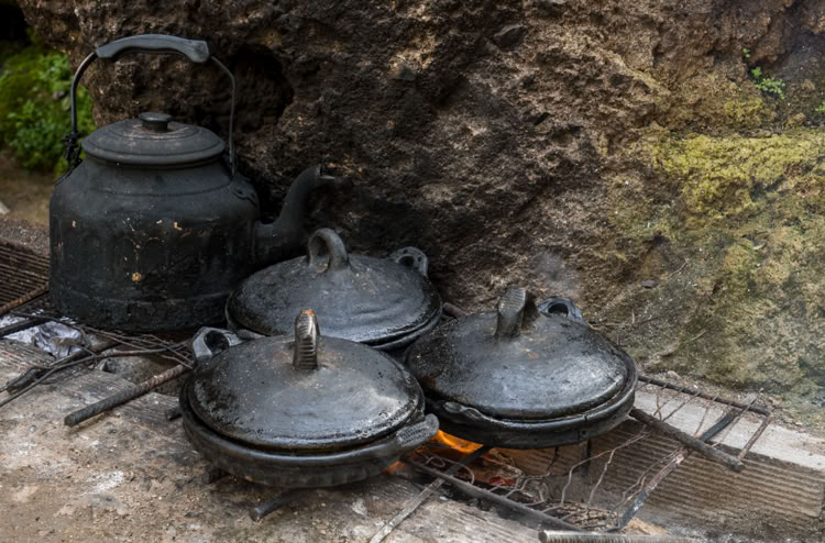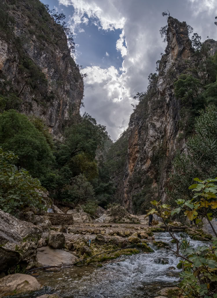 Und weil es so viel auszutauschen gibt über unsere Vehikel, das Reisen und überhaupt, wandern wir ein paar Tage zusammen im Nationalpark Talassemtane zum Archour Wasserfall, leider mit sehr wenig Wasser, und der God’s Bridge, einer Felsenbrücke hoch über dem Canyon, und stoßen abends mit dem einen oder anderen Gläschen geschmuggelten Alkohols am Feuer an.
