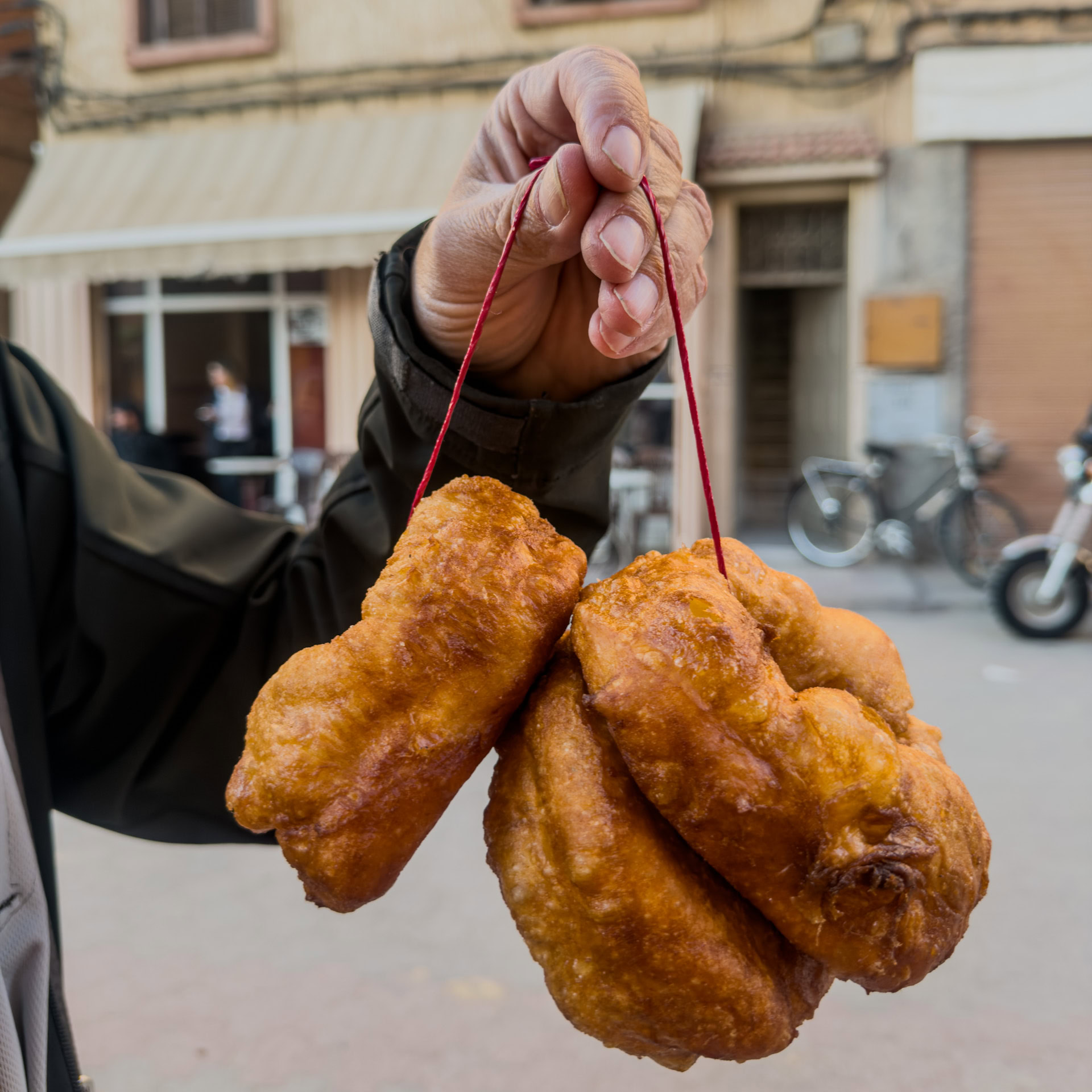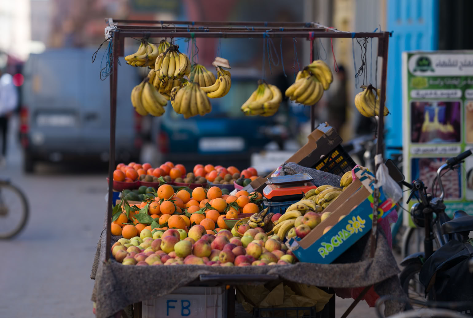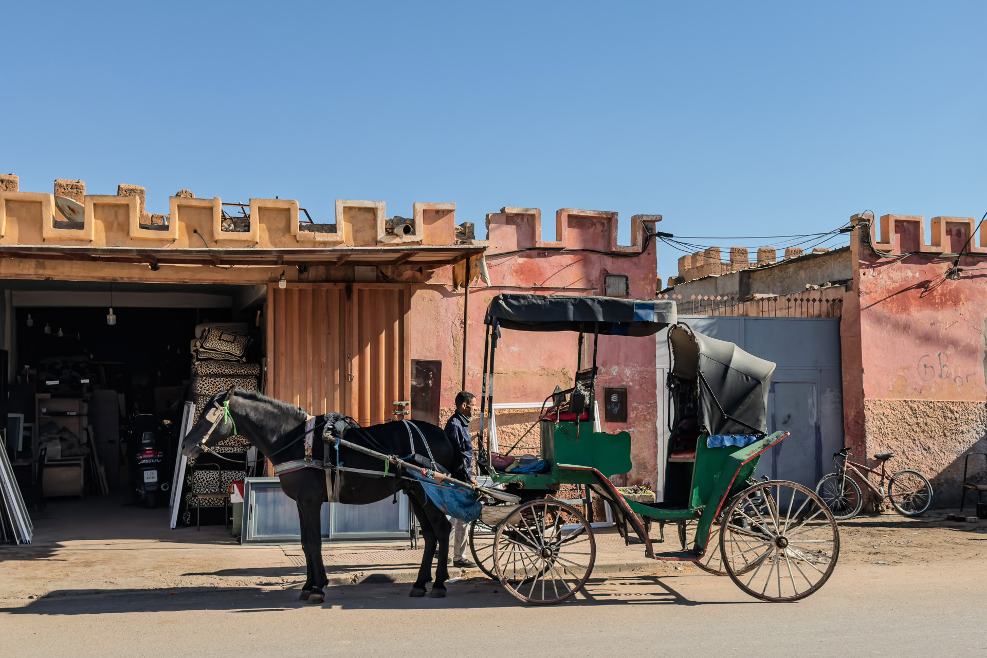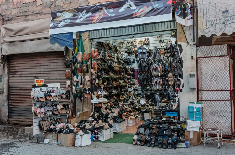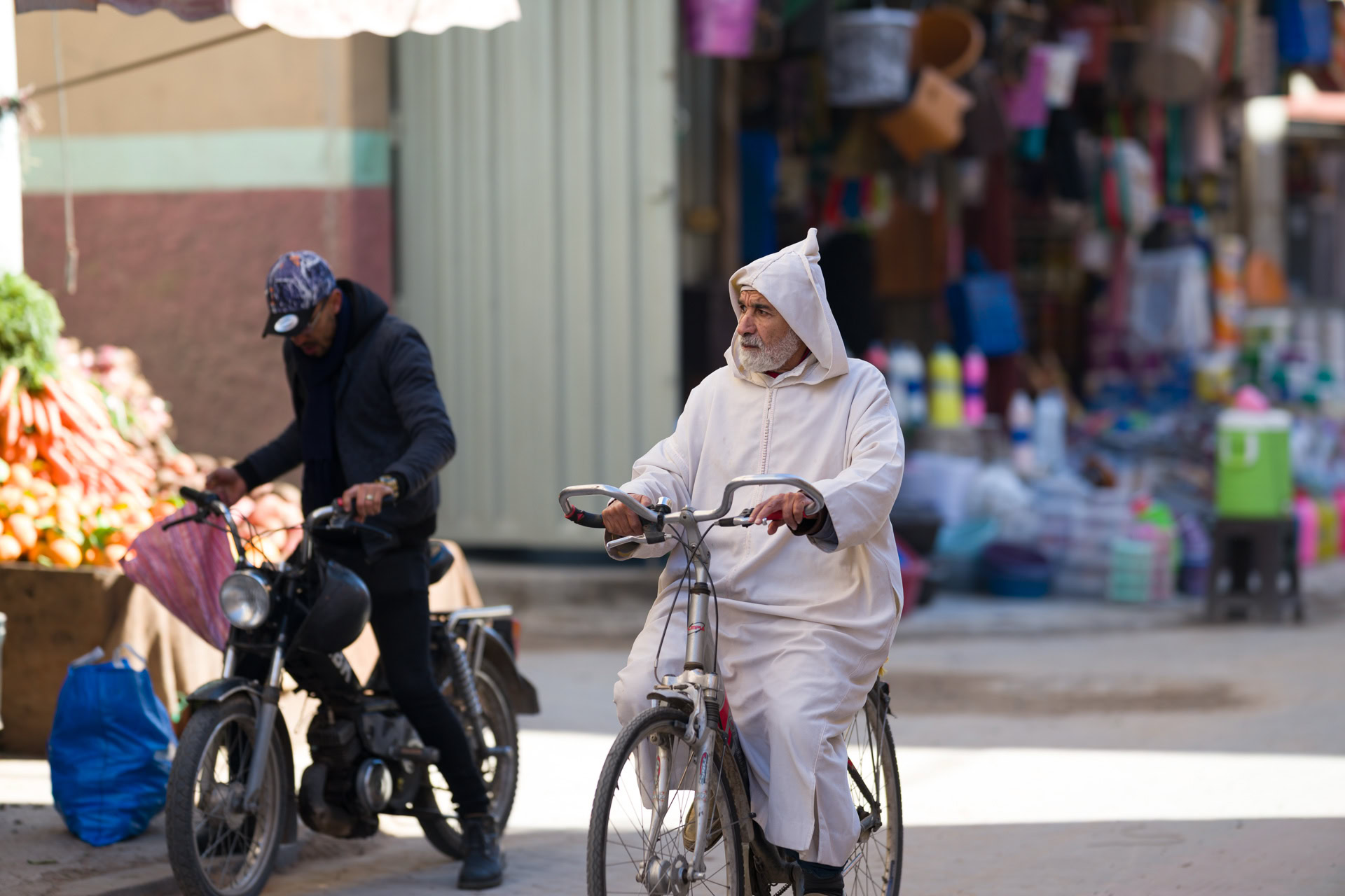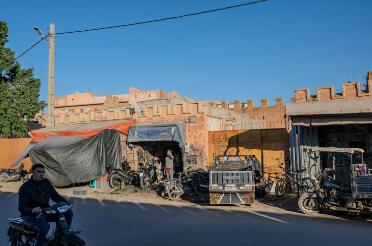Anfahrt auf Taroudant mit weißen Atlas-Gipfeln. Auf unserem Parkplatz: ein kleiner Gebetsraum. Gegenüber die Werkstatt-Meile. Wie jede Medina ist auch die von Taroudant von einer großen Mauer umgeben, durch die Tore betritt man das bunte Treiben. Bunt sind die zahlreichen Obststände, die befüllten Wasserflaschen. In den Wasserflaschen könnte Waschmittel sein. Aber daneben die pastellfarbenen Dinger - man kommt nicht drauf - sind Küken! Die Marokkaner schrecken vor nichts zurück.
