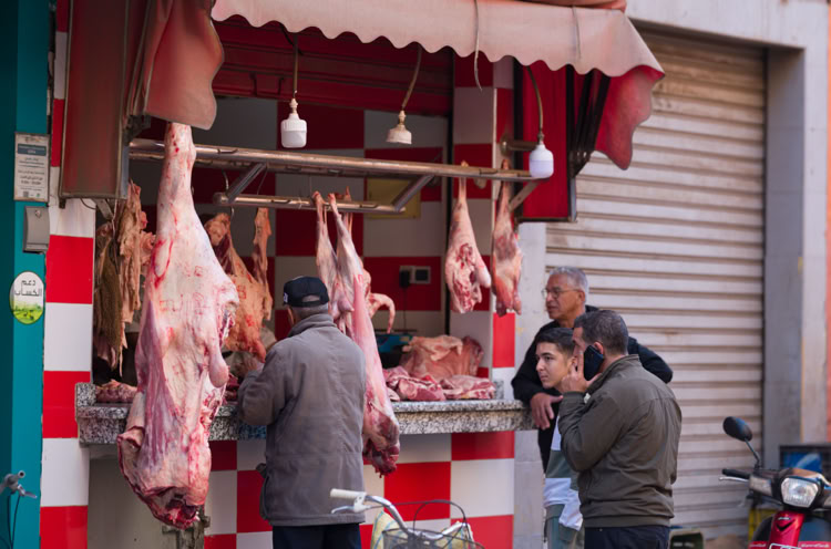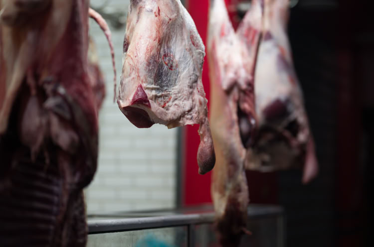 Vor jedem Metzgerstand hängt der Kopf des Rindes, der Ziege oder des Schafs. Man sieht, was man isst und man betätschelt es manchmal auch.