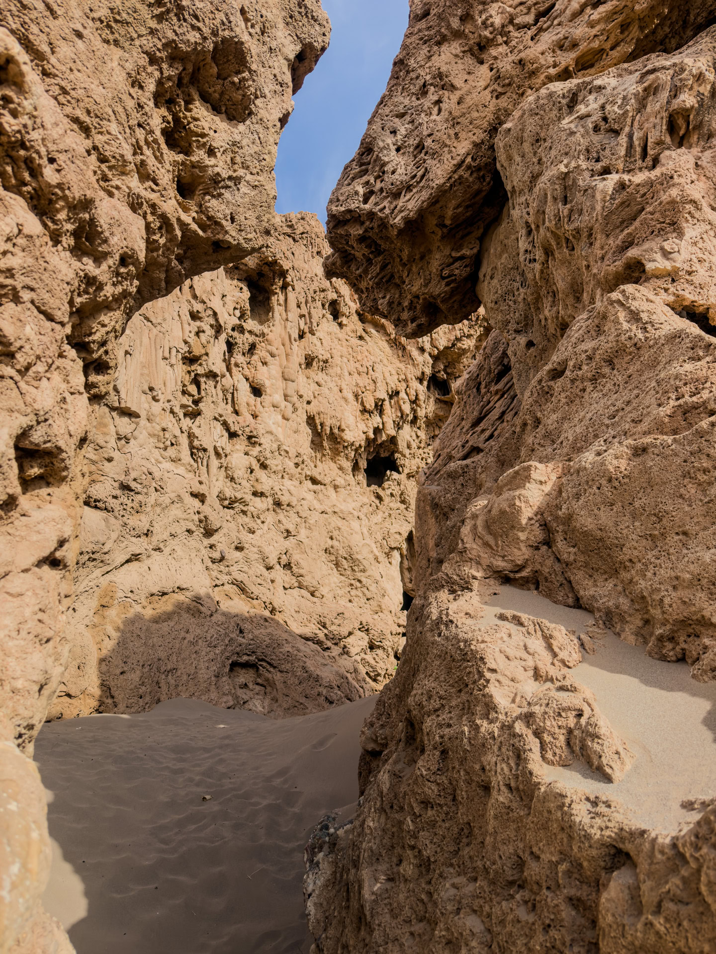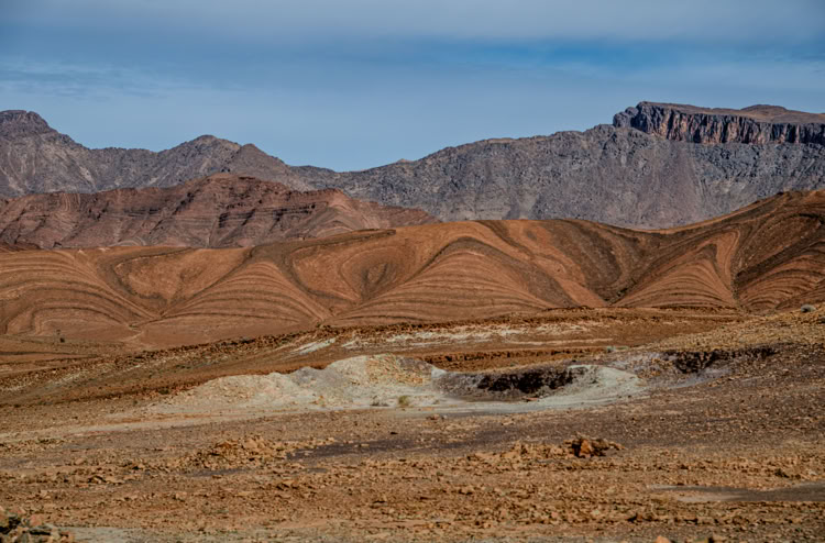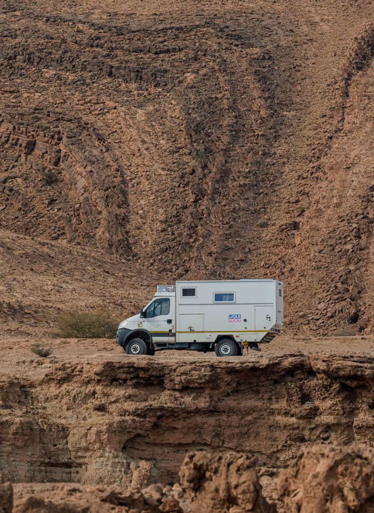 Unglaublich ist auch die Landschaft. Die Fotoausbeute ist fantastisch. Grotten, Canyons, bunte, gefaltete Berge, ausgetrocknete Flusstäler, enge Schluchten, die schneebedeckten Gipfel des Hohen Atlas’ im Hintergrund. Alles ist dabei. Dazu das unbeschreibliche Licht der Sonnenauf- und Sonnenuntergänge. Die ganze Fahrt bis Tafraroute ist ein Highlight für uns. Sie dauert deshalb auch eine ganze Woche.