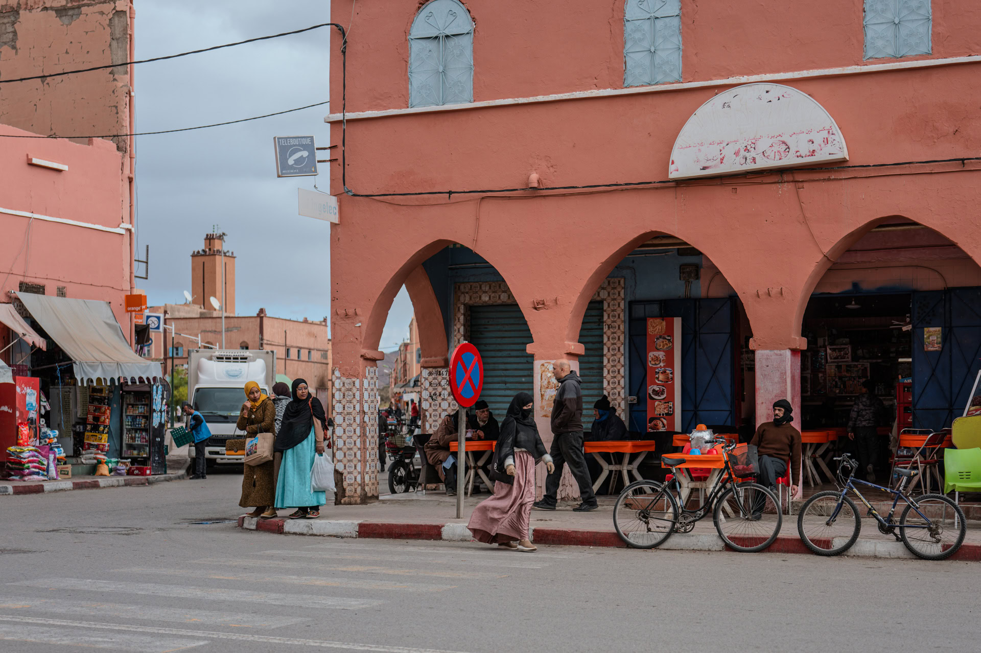 In Tata erkunden wir nicht nur das Städtchen, den Markt, trinken den obligatorischen Tee und lassen beim Änderungsschneider Peters Weste für 0,50 EUR flicken, sondern wir klettern (!) über die Felsen einer Furt aufs andere Flussufer, wandern durch die Palmengärten und wollen die historische Wasseruhr bestaunen. Abgesehen davon, dass der abenteuerlich geführte Weg ein paar Irrwege unsererseits beinhaltet, endet er an einem neumodischen Wasserturm. Die historische Uhr aus Tongefäß und Kupferschale, die die Bewässerung der Felder regelte, wurde das letzte mal vor zehn Jahren erwähnt. Das erfahren wir von ChatGPT aber erst nach der Wanderung…