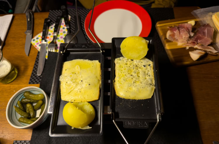 Da wir „am“ Berg waren, gibt’s abends das letzte Raclette des Jahres 2024. Zum einen gibt’s sicher auch beim Carrefour keinen passenden Käse mer, zum andern passt es einfach nicht in die Wüste, in die wir demnächst fahren,