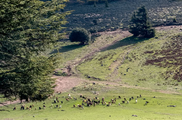 Drei Tage später landen wir auf dem Weg zum Jbel Tazekka, dem namensgebenden Berg des Nationalparks, in einem Atlaszedernwald. Mächtige Bäume mit mehr als einem Meter Stammdurchmesser stehen hier einer neben dem andern. Sie sind wohl 300 bis 500 Jahre alt. Das macht ehrfürchtig!