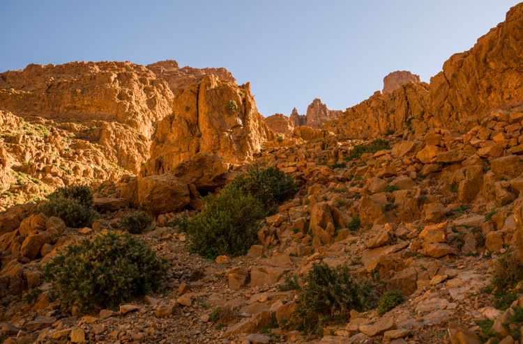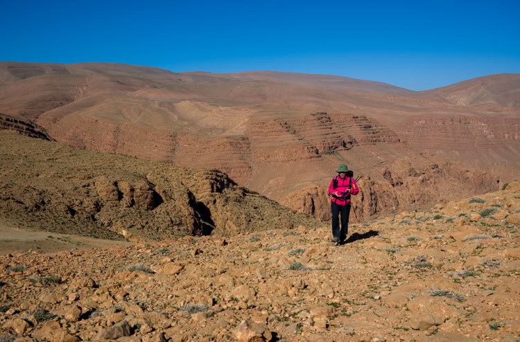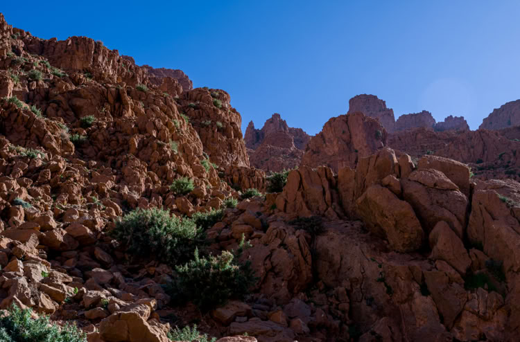 Wir machen uns also, wie des Öfteren in solchen Situationen, in Wanderschuhen auf die Socken den Berg hinauf „über“ die Todra Schlucht. Auf knapp vier Kilometer mehr als 500 Höhenmeter, das ist kein Zuckerschlecken, aber gute Ausblicke muss man sich erarbeiten!