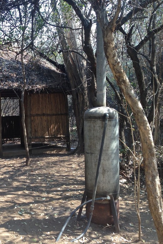 Das N||goabaca Camp (die zwei || sind ein Klick-Laut, den man als Deutscher unmöglich nachsprechen kann), liegt direkt an den Popa-Stromschnellen des Okavango. Unser Plätzchen Nr. 2 liegt schön im Schatten unter Bäumen und wir sind mal wieder die Einzigen. Wir haben eine überdachte Küchen-Hütte sowie eine eigene Aussichtsplattform zu den Stromschnellen. Eine Open-Air-Dusche im Bambus-Hüttchen rundet das Ganze ab. Nicht zu überbieten!