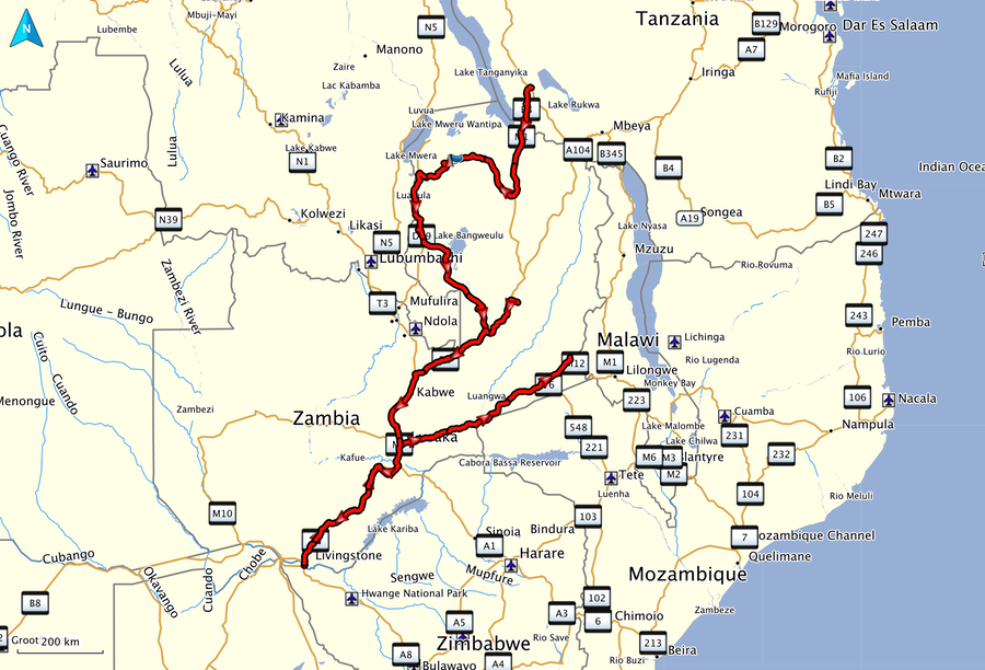 Route durch Sambia. Eine detailliertere Routenbeschreibung findet man