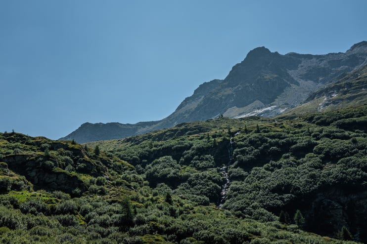 Heute machen wir es uns „gemütlich“ - wir nehmen den Postbus bis Brunnebiel, machen noch einen kleinen Umweg zur Alpe Blatt und steigen dann zum Halsesee auf.