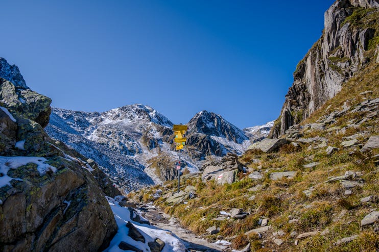 Egal ob mannshohe Statuen, Steinmännchen im Bach, rot-weiß-gestrichene Felsen oder gelbe Hinweisschilder - verlaufen kann man sich in der Schweiz eigentlich nicht. Nicht mal im Nebel, denn dann sind die Wege alle drei Meter markiert.