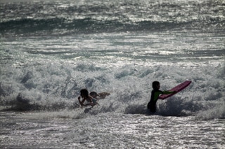 Die ersten Tage hängen an allen Stränden die roten Flaggen: Badeverbot! Die Rettungskräfte werden ziemlich hektisch, wenn ein Verrückter sich über das Verbot hinwegsetzt. Zunächst wird die Trillerpfeife gezogen - nützt nichts. Denn der Wind ist zu stark, man hört einfach nichts. Dann wird über den Strand gerannt und der Übertäter aus dem Wasser gezerrt.