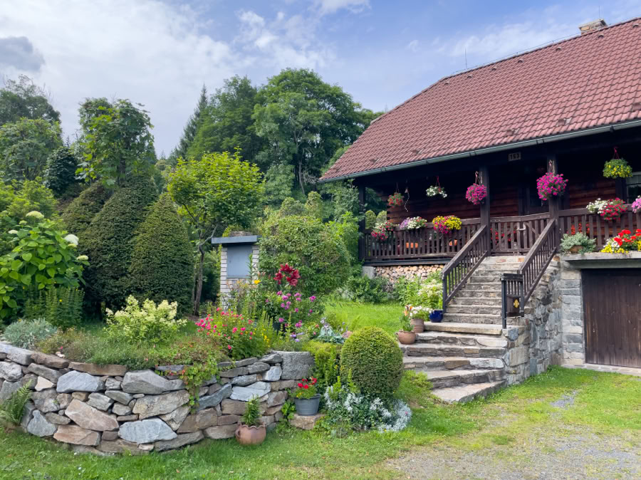 Ein Spaziergang durch Prášily weckt die gleichen Eindrücke wie vor vier Jahren, auch unser eigener Blog, den wir abends amüsiert lesen: die Häuser in sind hochwertig renoviert, die Balkone mit Blumen behängt. Jedes für sich eine besondere Immobilie*. Gibt es vielleicht einen Wettbewerb um den schönsten Vorgarten? Das Gesamtbild unterscheidet sich jedenfalls massiv von dem auf der bayrischen Seite. Dort wirken die Dörfer mitsamt den Leuten weit weniger hübsch hergerichtet, einfach ärmer und oft sogar ein bisschen heruntergekommen. Warum nur ist auf der tschechischen Seite ein hoch touristisches Gebiet auf Weltklasseniveau, dem die Bayern um einiges hinterher hinken?