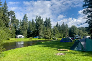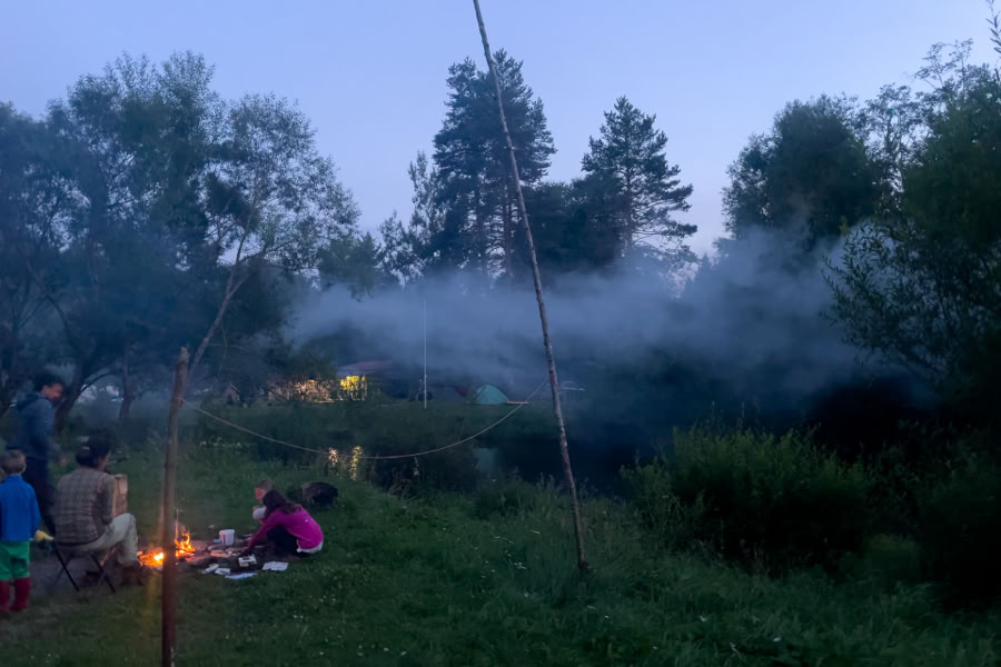 Der Campingplatz an der Moldau bei Soumarsky Most/Säumerbrück ist Kult! Naturcamping pur. Nichts ist parzelliert, kein störendes Licht in der Nacht. Strom? Fehlanzeige! Wasser? Muss man selbst pumpen. Duschen? Hierfür steigt man in die Moldau. Gekocht wird über offenem Feuer. Die Feuerchen lodern in der Dämmerung überall rechts und links der Moldau und Rauchschwaden hängen in der Luft. Lustig. Vielleicht nicht ganz so lustig ist das Plumpsklo - dafür lieben wir unsere Rosinante ;-)