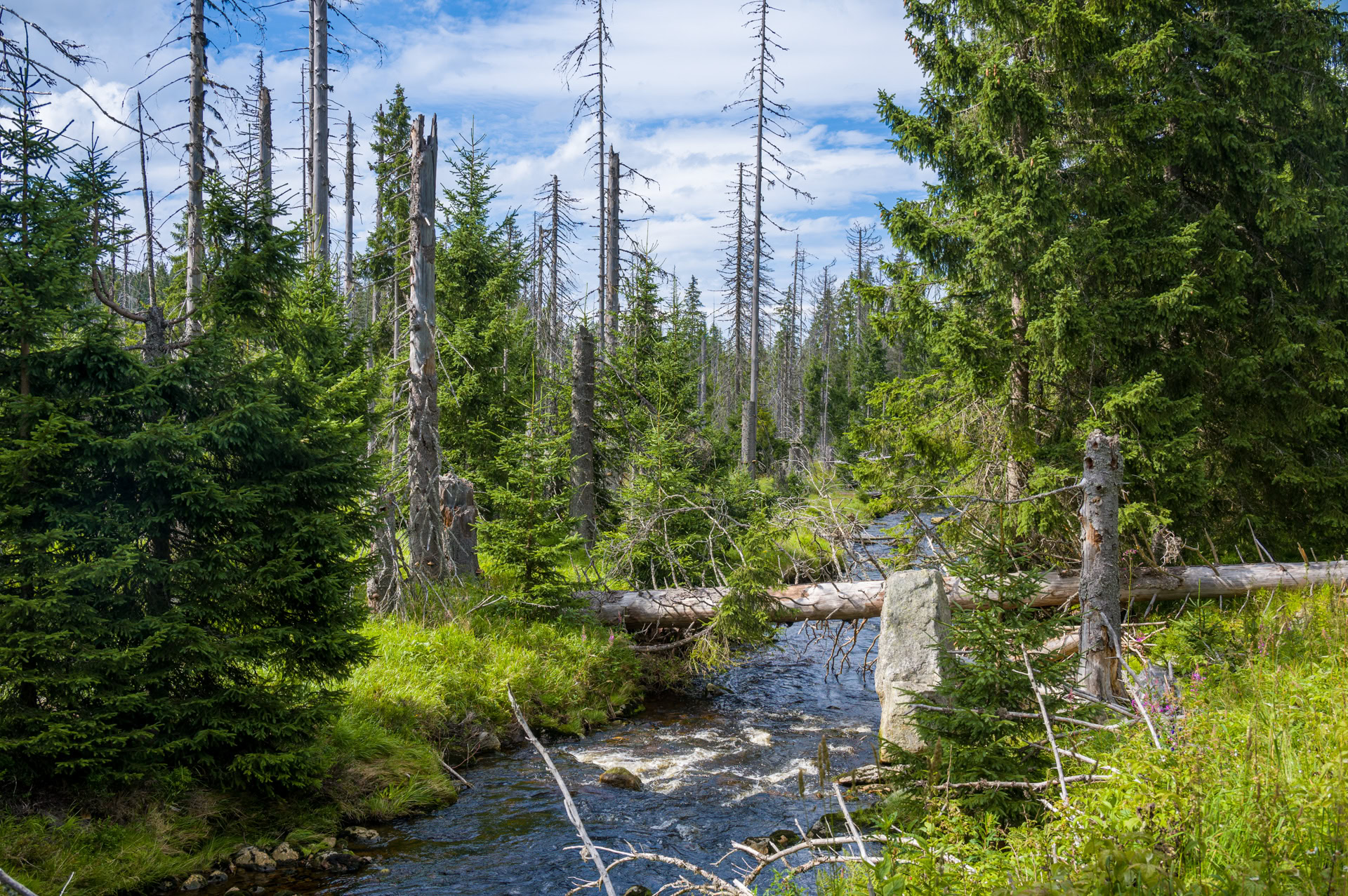 Überall spürt man, dass das Jahr 2021 besonders nass ist: Moos und Pilze sprießen üppiger, die Moldau und Vydra sind voller.