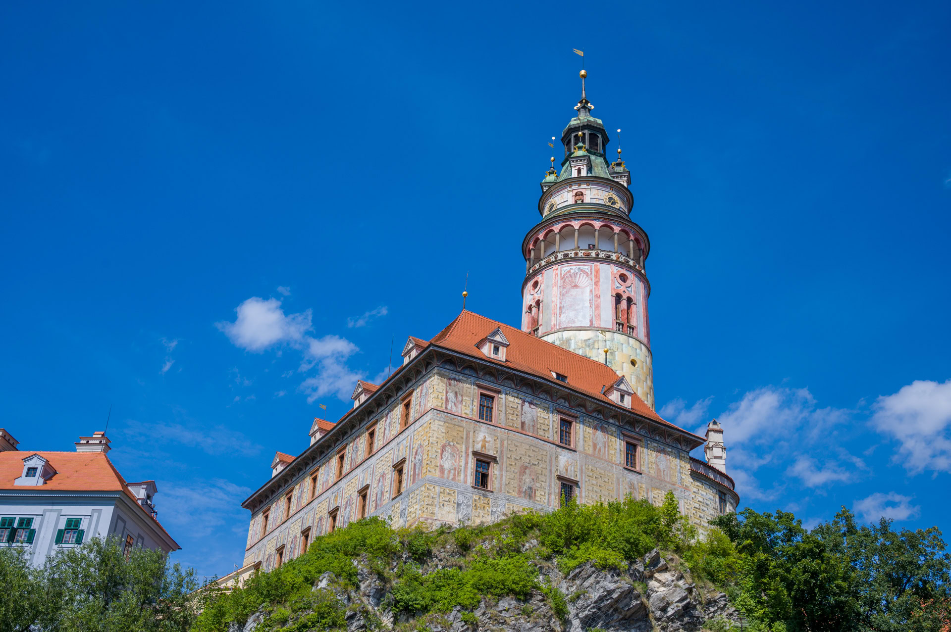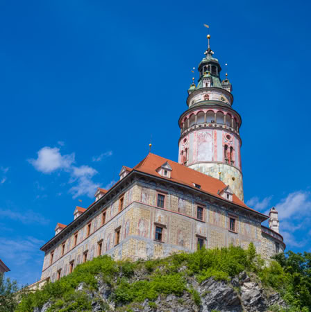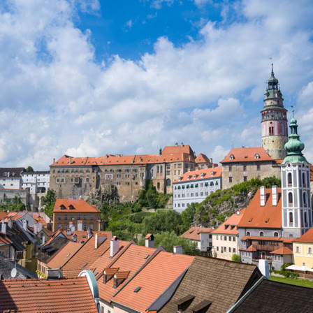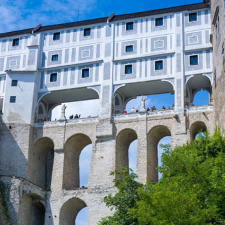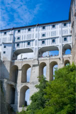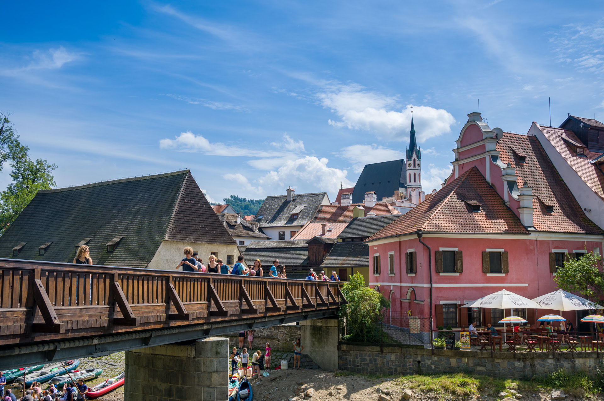 Krumlov liegt sehr bizarr in eine Moldau-Schleife eingeklemmt.
