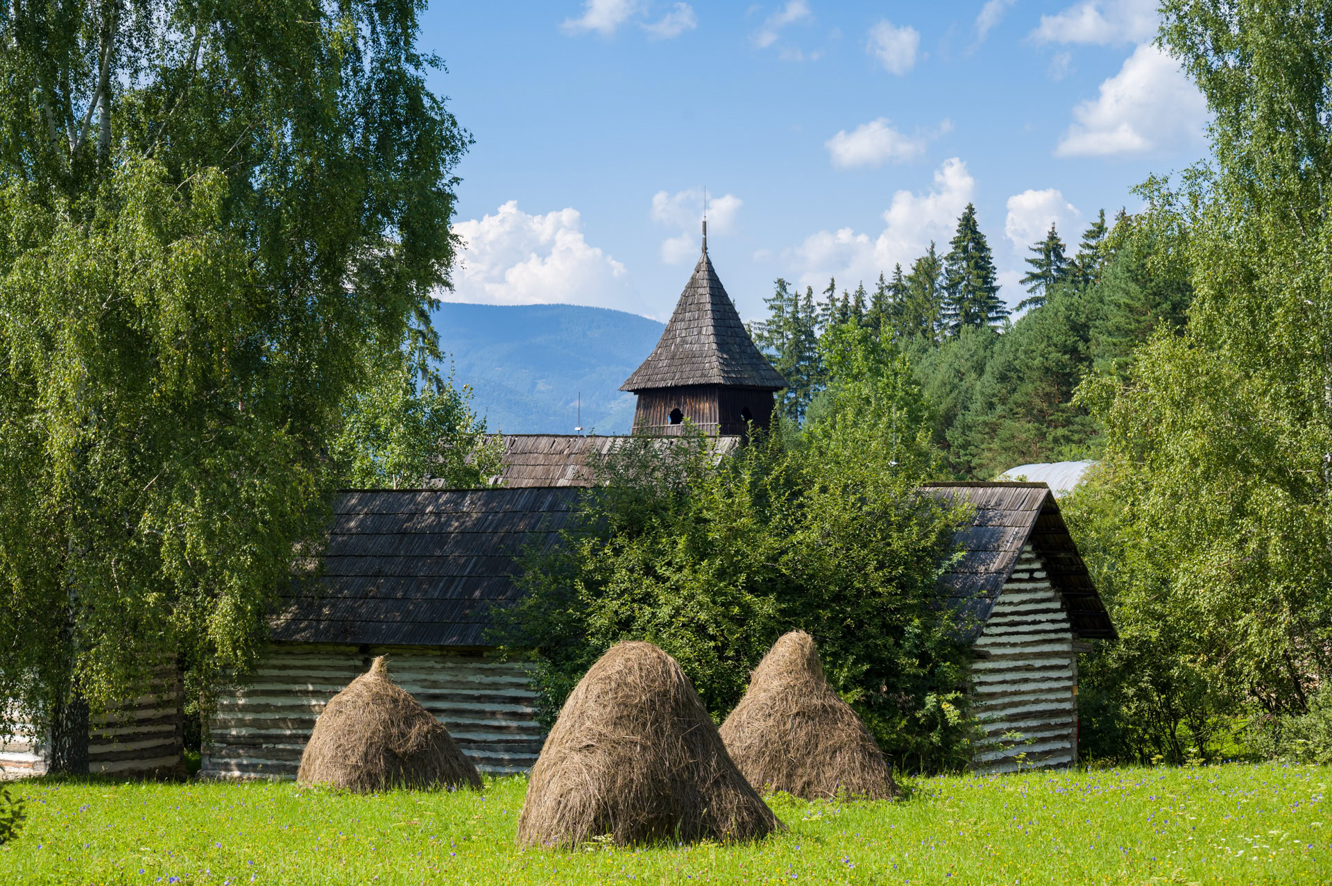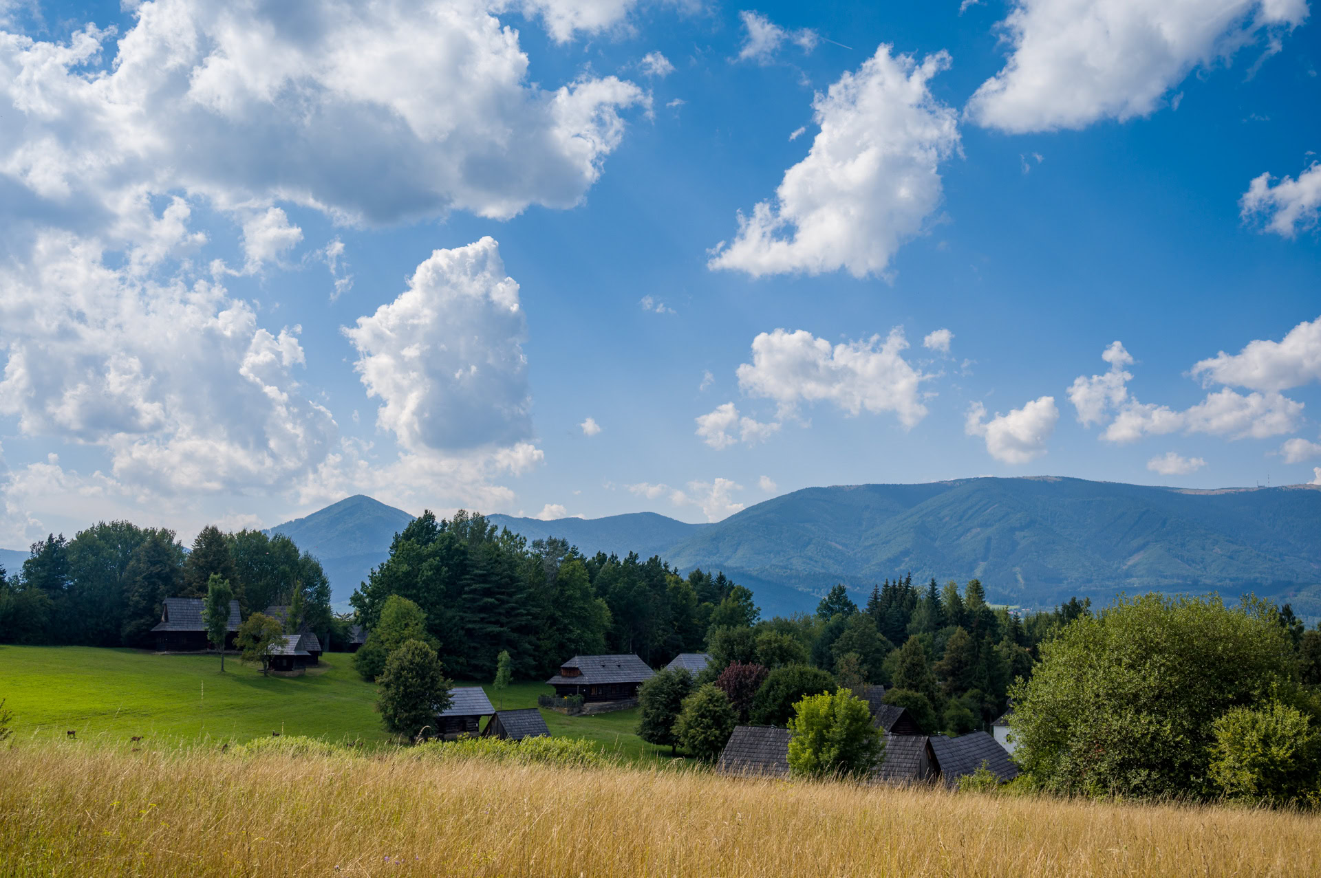 Im Freilichtmuseum Slovenskej Dedeni /Slowakische Dörfer sind eine Kirche, eine Schule und mehr als 150 alte Bauernhäuser und Scheunen aufgebaut. Sie sind als dörfliche Siedlung arrangiert, die sich weiträumig über der Hügellandschaft der Kleinen Fatra um das Städtchen Martin ausbreitet.