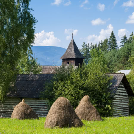 Nur 40 km Luftlinie entfernt liegt schon die Niedere Tatra, unser erstes Reiseziel. Hier besuchen wir eine der Artikularkirchen der Slowakei.