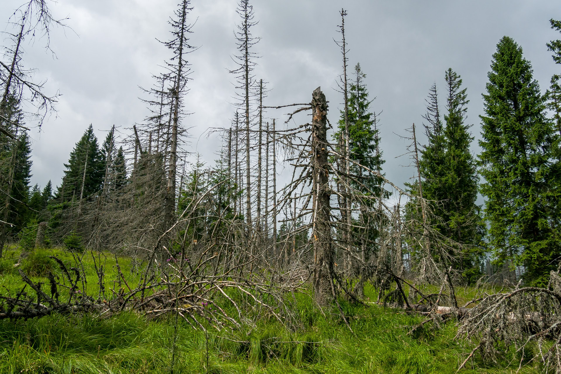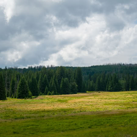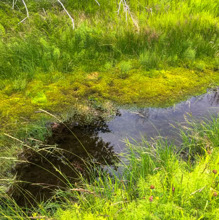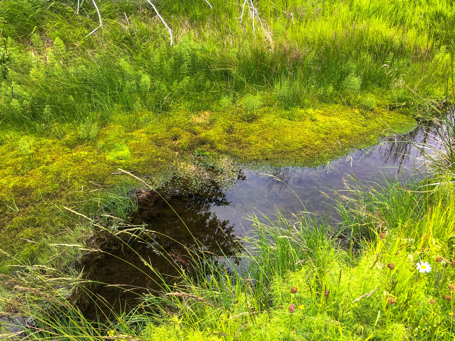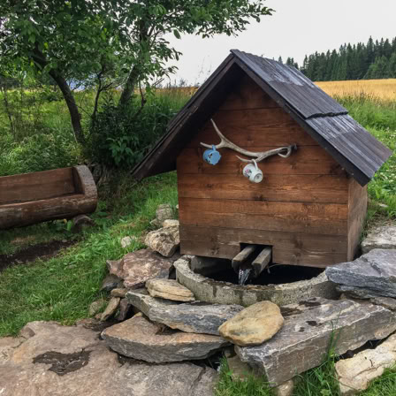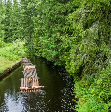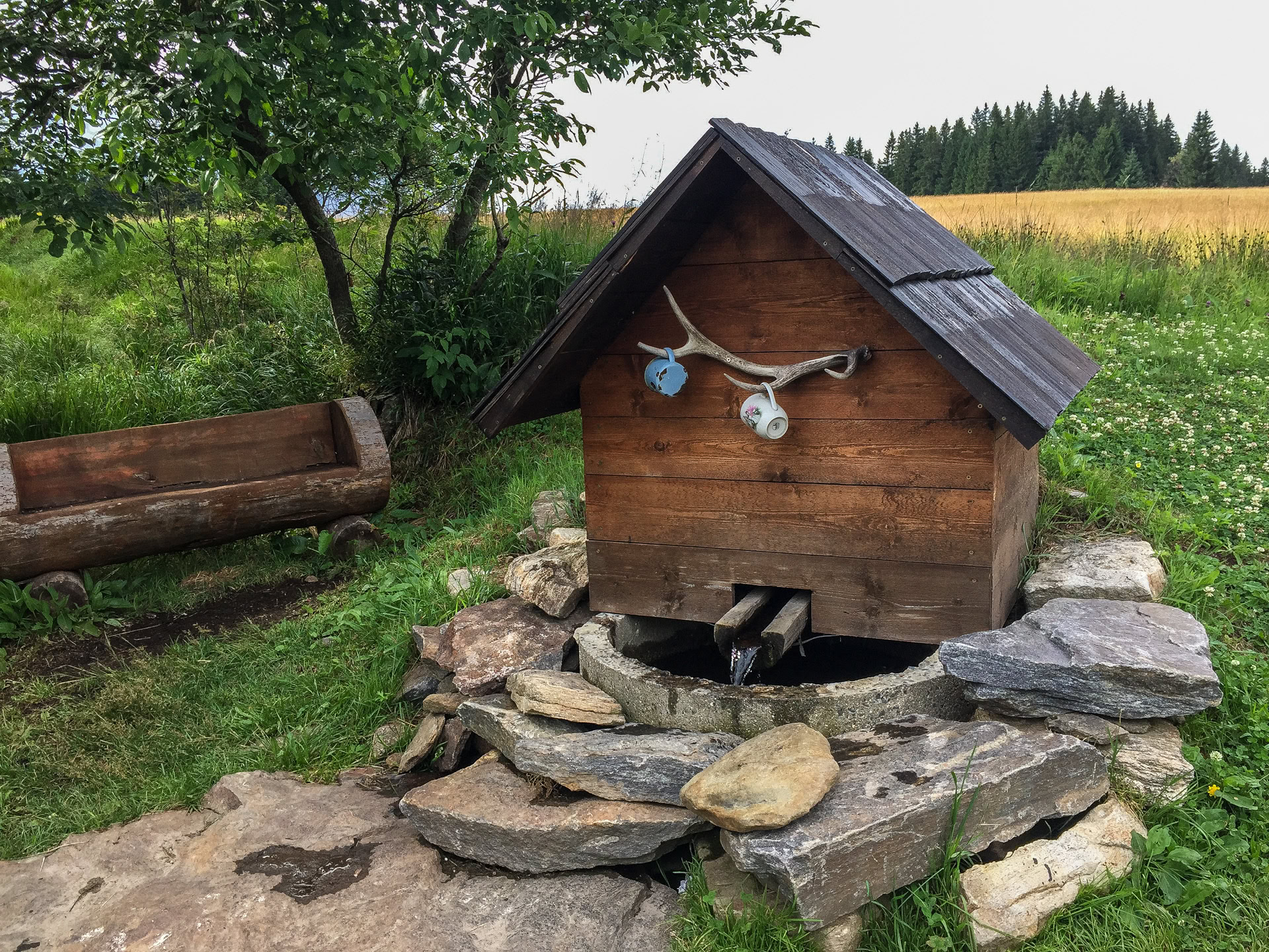 Natürlich sind wir nicht (nur) zum Essen gekommen, wandern von unserem Übernachtungsplatz bei der Brücke Hradlový most /Rechle nach Modrava und einen Tag später von dort zur früheren Einöde Březník entlang idyllischer Flussauen, alter Flößerkanäle, durch Urwälder und Blumenwiesen und packen auch zum ersten Mal unsere Regenjacken und Hosen aus.
