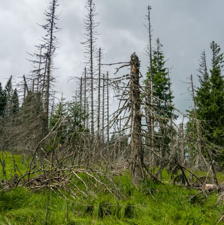 Modrava ist für tschechische Verhältnisse schon ordentlich überlaufen, trotzdem ist es nicht vergleichbar mit einem typischen Touri-Ort. Zwar ist die Ortsdurchfahrt nur noch für Übernachtungsgäste erlaubt und für die Parkplätze wird eine Gebühr verlangt, aber wir sehen keinen einzigen Billig-Souvenir-Laden, kein Schnell-Fress-Restaurant. Rundum: der üble Touristennepp scheint hier verbannt zu sein. Stattdessen finden wir in der Brauerei Lyer ein nagelneues Restaurant, essen diesmal nicht nur deftig, sondern delikat und finden, dass man das Ambiente allerhöchstens mit einer Schweizer Hütte auf höchstem Niveau vergleichen kann. Nur der Preis liegt mit 20 EUR wahrscheinlich bei einem Drittel …