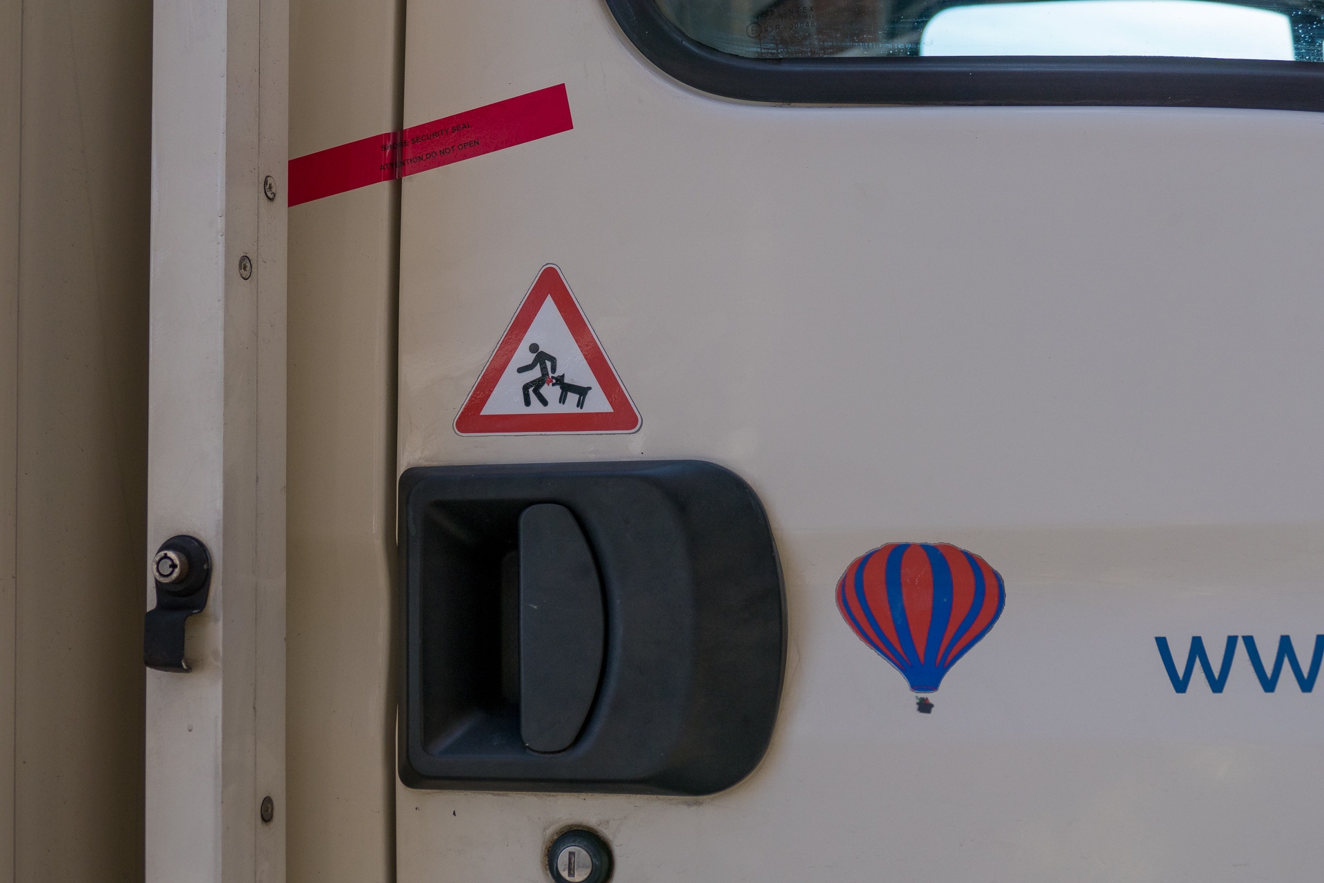 - Anschließend eine Zoll-Besichtigung des Autos, bei der wir lediglich nach der Anzahl der Reserveräder, Kochstellen und Kühlschränke gefragt werden. Für alle anderen Dinge im vollgestopften Auto interessiert sich niemand. Auch konnten wir schon vorab die Kabine öffnen, die sorgsam mit Zoll-Banderolen versiegelt war. Eine Stunde lang hätten wir unbeaufsichtigt Sachen ein- oder ausladen können. Seltsam.