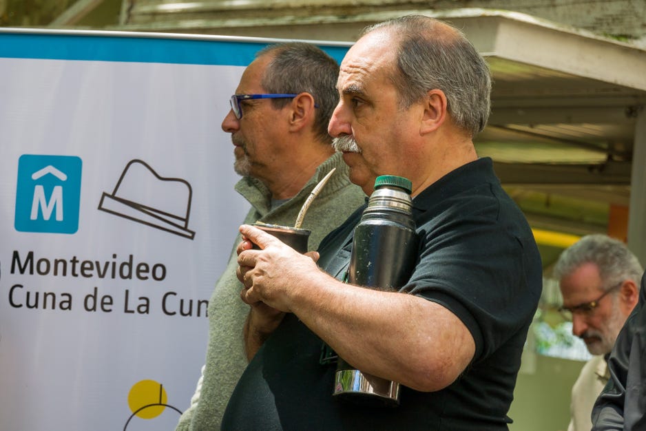 Jeder Zweite hat eine Thermoskanne unter den Arm geklemmt und ein etwas seltsam anmutendes Gefäß mit Trinkhalm in der Hand - das sind die traditionellen Kalebassen aus Kürbis mit einer Bombilla, d.h. einem Trinkrohr mit eingebautem Sieb, durch das man Matetee schlürft wo immer man geht und steht. Besser Ausgerüstete haben eine Matetee-Umhängetasche mit den erwähnten Utensilien über der Schulter. Man sitzt auf der Kaimauer oder am Strand, schwatzt, liest, macht Sport und lässt es sich gut gehen.