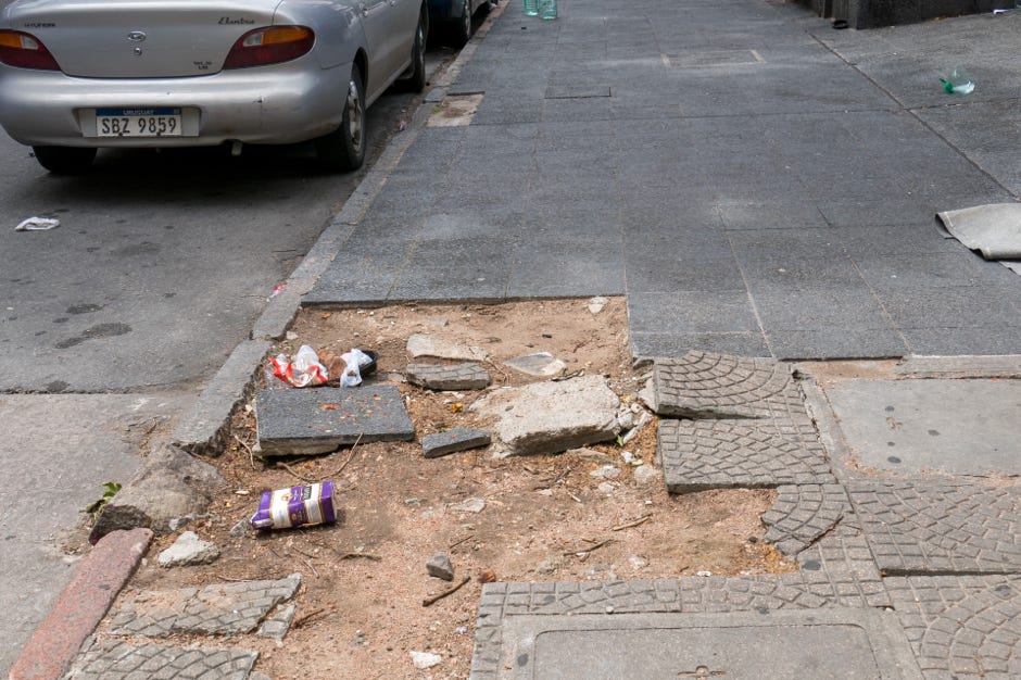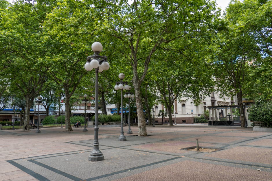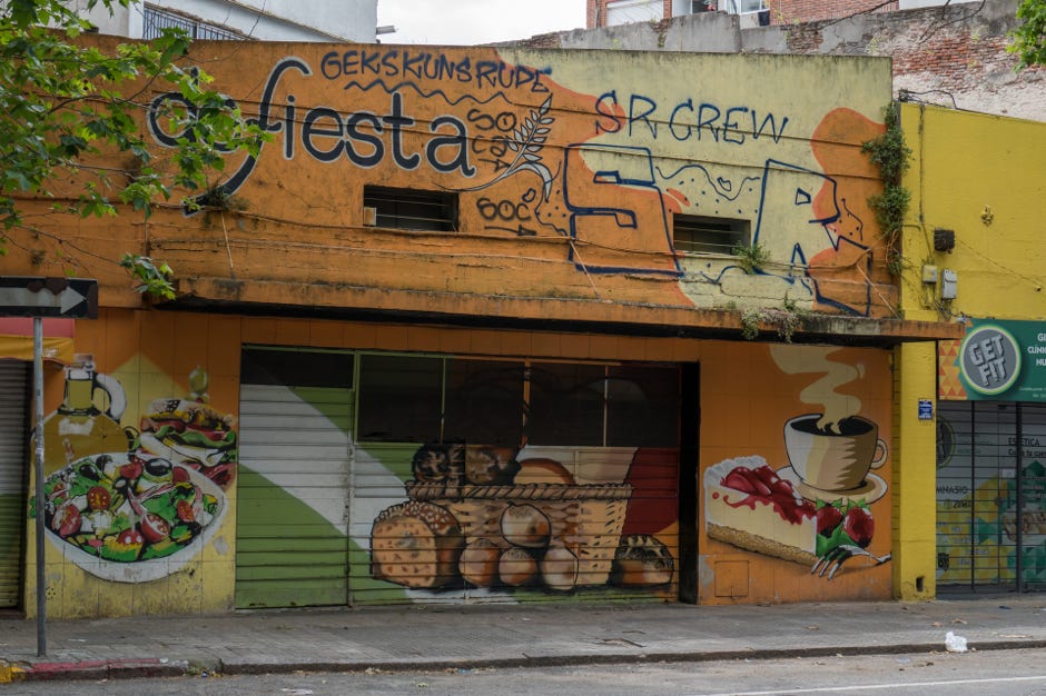 Entgegen allen Erwartungen verfällt die Stadt am Wochenende in eine Art Ruhemodus. Das beginnt am Samstagmorgen damit, dass wir um 8 Uhr kein geöffnetes Café zum Frühstücken finden. Normalerweise keine Frühaufsteher, irren wir mit unserer inneren Uhr, die noch nach mitteleuropäischer Zeitzone tickt, erst einmal eine Stunde durch die Stadt und die Mägen beginnen zu knurren, bevor wir uns um 9 Uhr als erste Gäste eines Cafés über ein Omelett hermachen. Am Sonntag sieht es gleich ganz düster aus - unsere Vermieterin hatte es schon prophezeit. Es sind wirklich alle Läden der Restaurants und Cafés heruntergelassen. Alle? McDonald’s hat natürlich auf, aber deswegen sind wir nun wirklich nicht nach Montevideo gekommen. Schließlich finden wir noch ein lokales Fast-Food-Restaurant. Besser als nichts!
