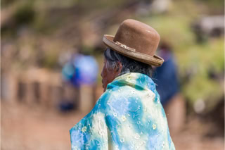 Bolivien 2022. Hut-Impresssionen beim Präsidentenbesuch am Titicacasee.
