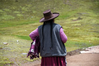 Peru 2022, Regenbogenberge. Die Decke unterm Arm schützt wie der Hut vor Kälte und Regen.