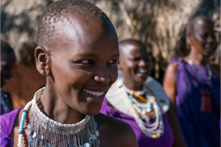 Tansania 2015. Auch die Massai Frauen tragen unter aufwendigem Kopfschmuck ...