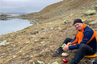 Unter O - wie Outdoor sind Aktivitäten, wie Holz sammeln, Feuer machen, Wasser füllen, Outdoor Duschen, etc. gesammelt. Aber auch unsere herausstechenden Frühstücks- und Cappuccino-Plätze! Wer’s noch nicht weiß: Gaskocher, Milchaufschäumer und Espressokännchen schleppt Peter auf jeder Wanderung mit. Das ist absolut Kult!