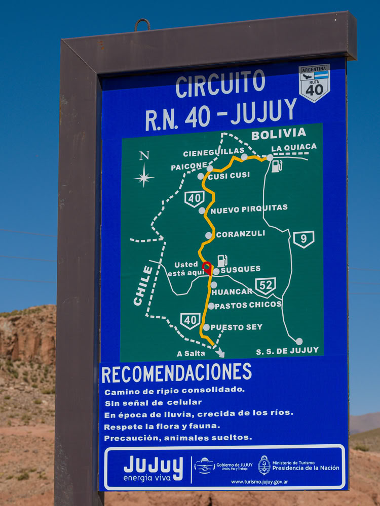 Argentinien 2022. Absolute Ausnahme: Auf diesem Abschnitt der Ruta 40 fährt man ohne Empfang - und wird darüber informiert!